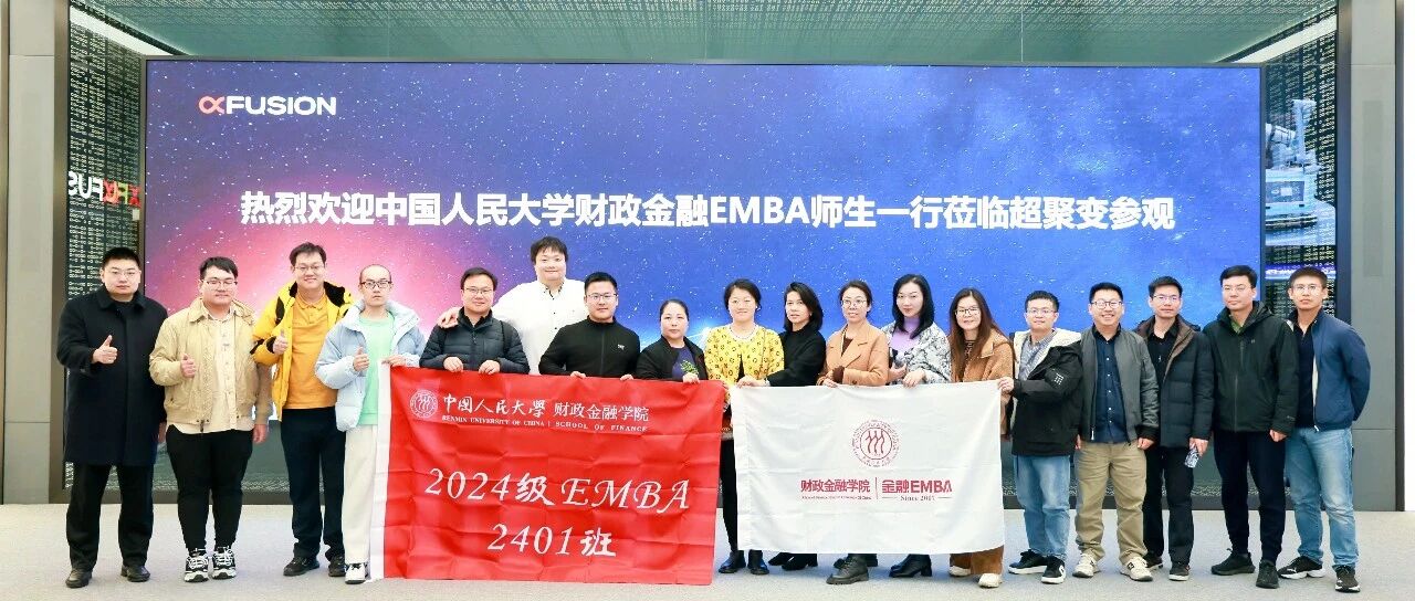 冬序启章,中国人民大学财政金融学院EMBA24级全体同学走进超聚变数字技术有限公司北京总部展厅,开展“算力赋能数字经济”实地参访。